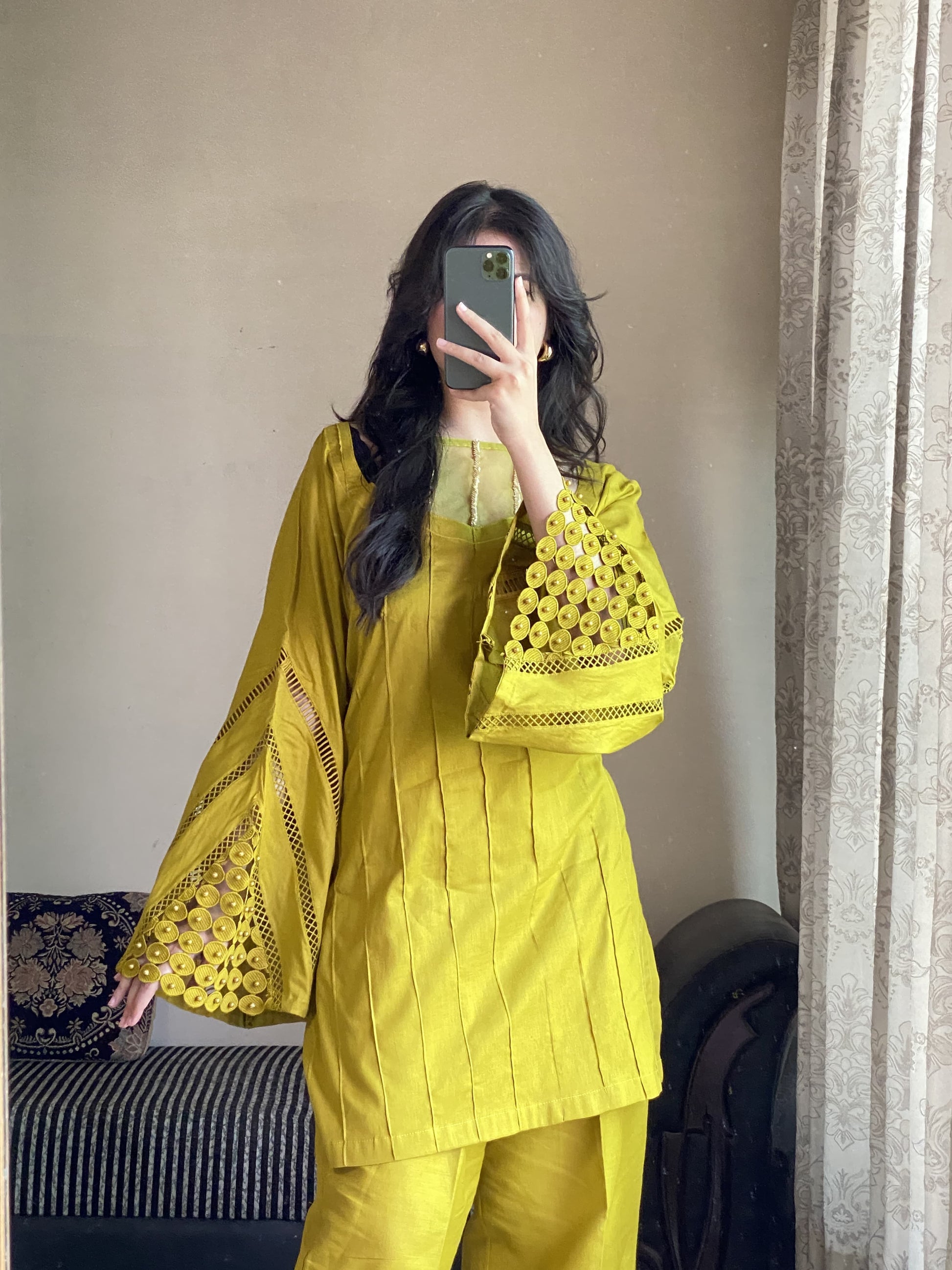 Absolutely in love with this dress! The handwork is stunning, the neck design is elegant, and the lace detailing on the sleeves adds a perfect touch. Every detail is crafted beautifully—couldn’t have asked for a more perfect piece