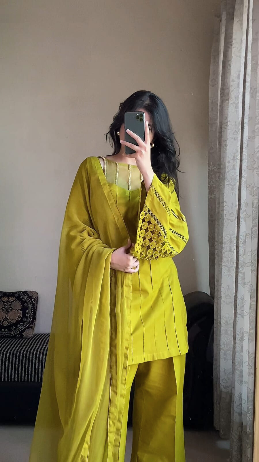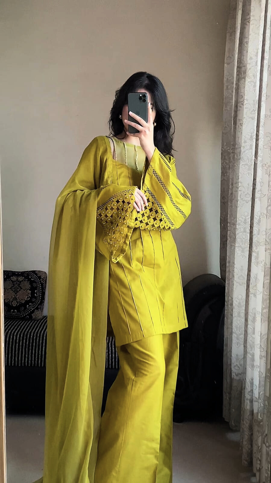 Number of Pieces: Top + Bell-Bottom Trouser + Dupatta